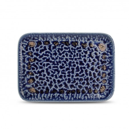 Composée d\'une assiette, de 3 coupelles et d\'une pierre volcanique sur une planche en bambou.
